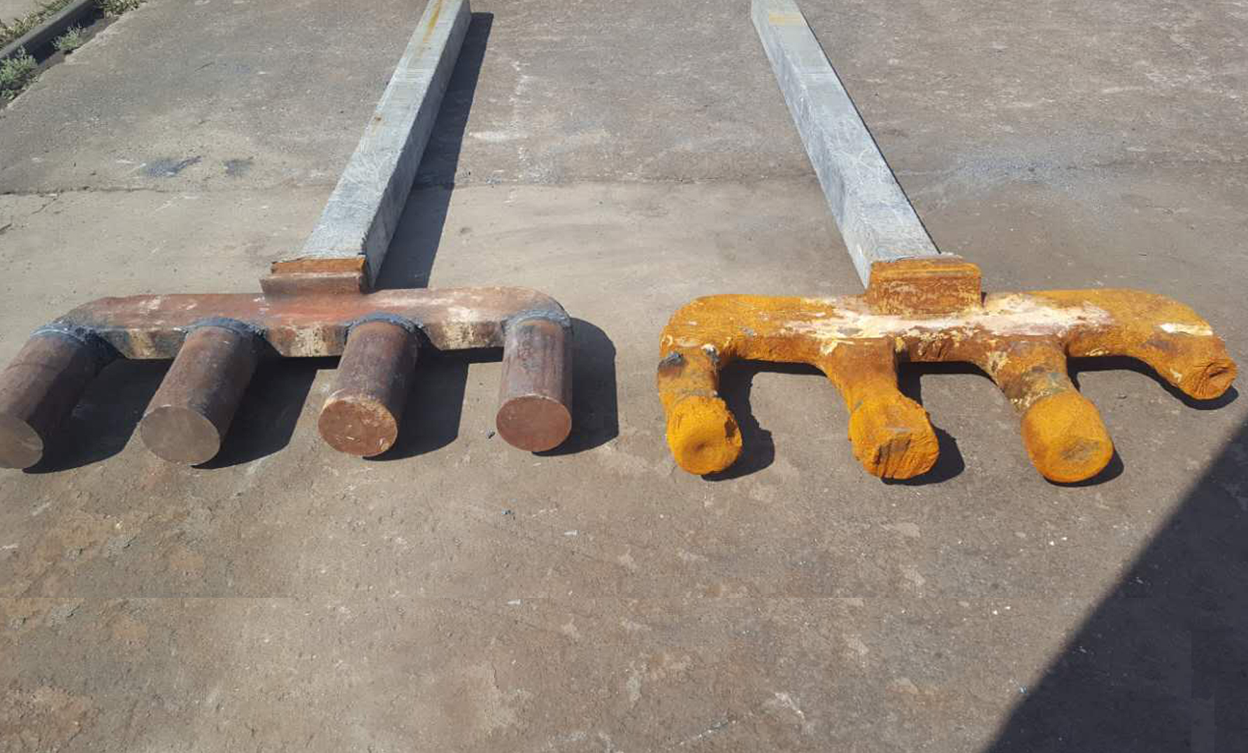 结构型节能911香蕉视频网站横梁、钢爪腿圆钢及电渣焊口材质均为Q235,经电渣焊接,三者充分熔合为一个整体,整个钢爪力学性能导电性能完全一致,钢爪腿与腿之间、批与批之间无质量差异。经电解槽实际测量,同比于铸钢爪,电压降降低15一20mv。